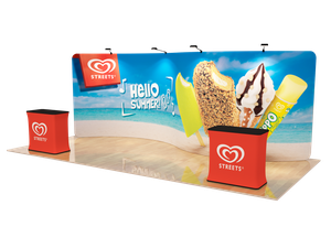 Are you seeking an affordable, custom display for your next trade show event? This 10x20 Trade Show Booth is the perfect portable display for a custom contemporary feel and will draw attention to your brand! Our aluminum-framed booths are manufactured to be easily transported and assembled. It comes fully loaded with custom dye sublimation graphics, offering an efficient option for advertising at any event and engaging any audience. Dye sublimation printing provides longevity with a design that won’t crack, peel or fade! The plastic hard case also converts into a fully functional podium with a printed graphic print for extra brand marketing.