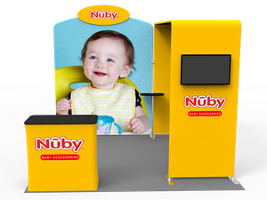 Looking for an affordable, custom display for your next trade show event? This 10x10 Trade Show Booth is the perfect portable display for a custom contemporary feel and will draw attention to your brand! Our aluminum-framed booths are manufactured to be easily transported and assembled. It comes fully loaded with custom dye sublimation graphics, offering an efficient option for advertising at any event and engaging any audience. Dye sublimation printing provides longevity with a design that won’t crack, peel or fade! The plastic hard case also converts into a fully functional podium, complete with a printed graphic for extra brand marketing.