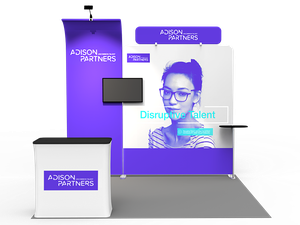 Looking for an affordable, custom display for your next trade show event? This 10x10 Trade Show Booth is the perfect portable display for a custom contemporary feel and will draw attention to your brand! Our aluminum-framed booths are manufactured to be easily transported and assembled. It comes fully loaded with custom dye sublimation graphics, offering an efficient option for advertising at any event and engaging any audience. Dye sublimation printing provides longevity with a design that won’t crack, peel or fade! The plastic hard case also converts into a fully functional podium, complete with a printed graphic for extra brand marketing.